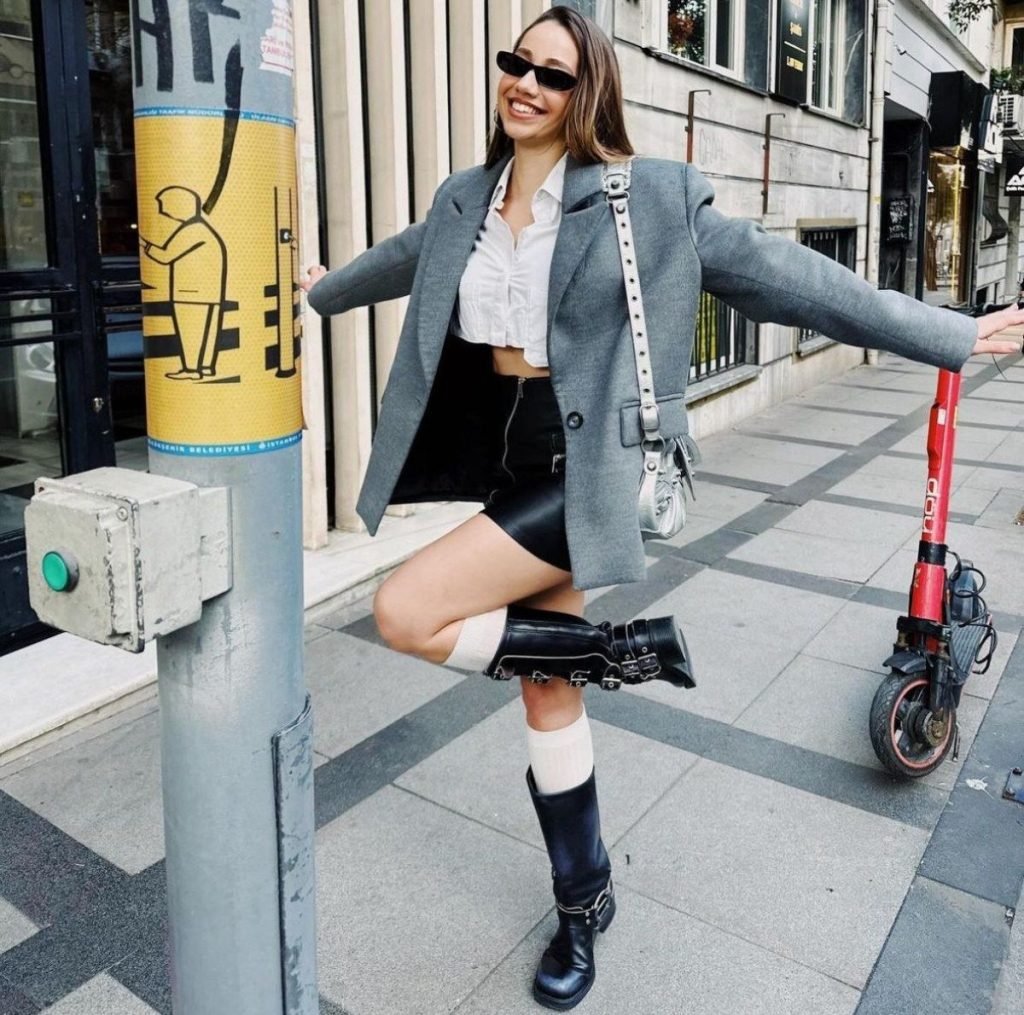 Dizinin açılış ve kapanışını yapan Özge Özakar, deri mini etekle kamera karşısına geçti. Verdiği pozları abonelere sundu.