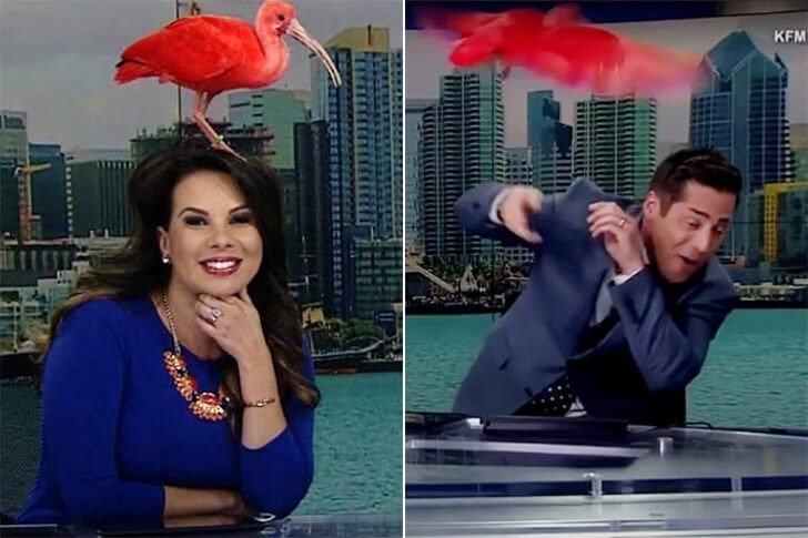 2018’de, kızıl ibis canlı televizyonda CBS News 8 Morning News sunucularını şaşırttı. Kızıl ibisler, leyleklerle akraba olan orta ila büyük boy yerden uçan kuşlardır.